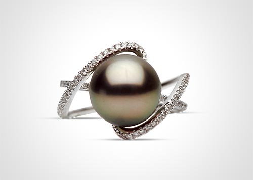 R012192-T - 18KW/6.8G Tahitian Ring 1RD-0.08CT 89RD-1.20CT 13-14mm